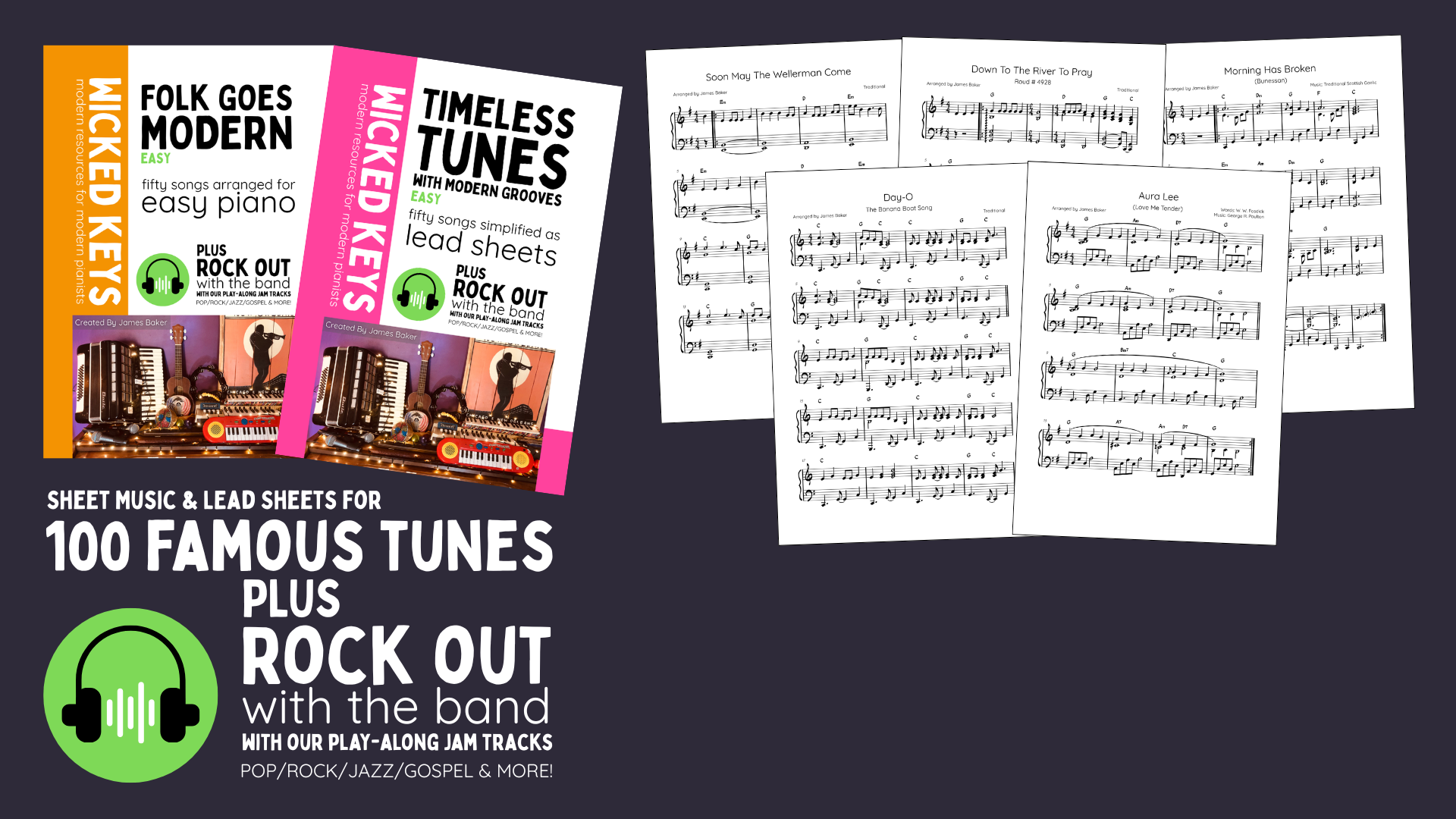 Our easy sheet music combines lead sheets and easy piano arrangements with epic modern backing tracks, so you can jam along with the band on famous tunes and seriously wicked originals.
